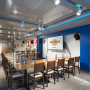 ESPACIO DE REUNIÓN CON PANTALLA Y SISTEMA AUDIO INCORPORADO EN LA SEGUNDA PLANTA DE HARD ROCK CAFE VALENCIA