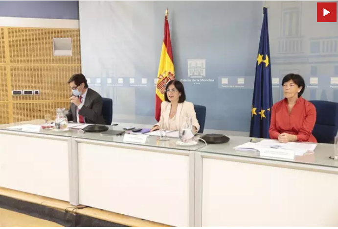 De derecha a izquierda: La ministra de Educación y Formación Profesional, Isabel Celaá, la ministra de Política Territorial y Función Pública, Carolina Darias, y el ministro de Sanidad, Salvador Illa, durante su comparecencia en La Moncloa. Foto: Moncloa