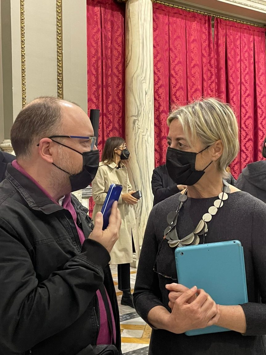 Gerard Sánchez entrevista a la presidenta de l’Associació València Capital del Disseny, Marisa Gallén. Foto: Lucía Puche