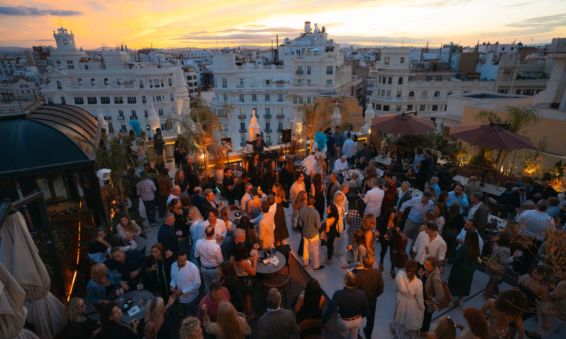 La fies­ta «Peo­ple from Valen­cia» reúne a dece­nas de invi­ta­dos en la terra­za del Ate­neo Mer­can­til de Valen­cia.