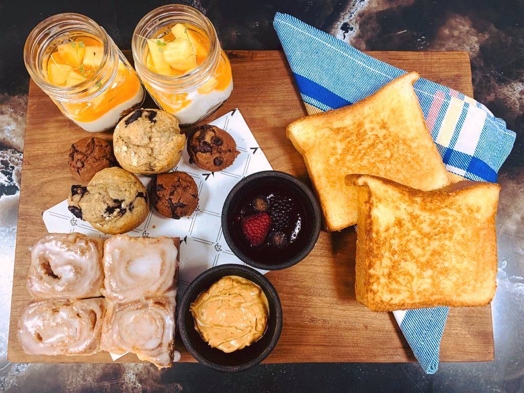 Pri­me­ro entó­na­te con un expre­so, cap­puc­cino o un lat­te mac­chia­to, un cho­co­la­te calien­te o con la car­ta de tés. Des­pués te derre­ti­rás con una tabla de dul­ces al cen­tro de mesa con tos­ta­das, mer­me­la­da fru­tos rojos, cre­ma de cacahue­te, muf­fin inte­gral de arán­da­nos, mini mag­da­le­nas de cho­co­la­te, cin­na­mon rolls y yogur eco­ló­gi­co de cabra con mer­me­la­da de melo­co­tón. A con­ti­nua­ción, se ser­vi­rá un pla­to de hum­mus y otro de gua­ca­mo­le, con bowl de chips vege­ta­les. Para ter­mi­nar con fuer­za toman­do una tos­ta de sal­món y agua­ca­te, o unos hue­vos bene­dic­ti­ne, o un sand­wich de pas­tra­mi o un gofre con hue­vos y sobra­sa­da; a ele­gir.