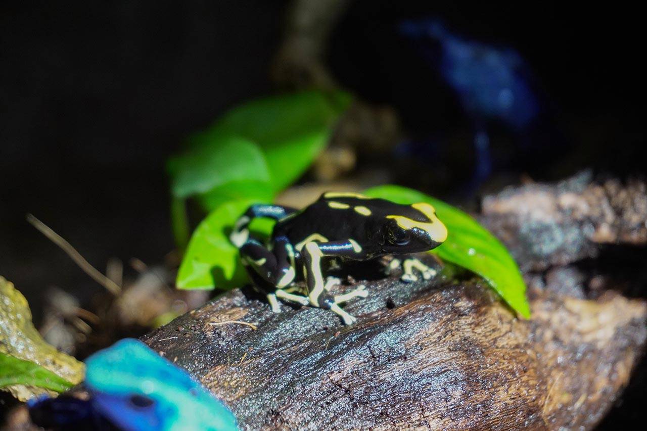 En Bioparc Valencia podemos descubrir desde ayer hasta nueve especies de anfibios, todas incluidas en la lista roja de la UICN (Unión Internacional para la Conservación de la Naturaleza). Dos de ellas solo pueden verse en España en Bioparc Valencia, la rana de lluvia malgache (Scaphiophryne madagascariensis) y la rana tomate (Dyscophus guineti). Las ranas mantelas están representadas con la marron (Mantella betsileo) y la dorada (Mantella aurantiaca), esta última en peligro crítico de extinción. Otras tres ranas son célebres por sus llamativos colores que advierten de su potente toxicidad: la veneno fantasma (Epipedobates tricolor), roja con franjas blancas; la veneno azul (Dendrobates tinctorius “azureus”) de tonalidad añil intenso con puntos negros; y la última incorporación, la flecha amarilla y azul (Dendrobates tinctorius “alanis”), de tono azul oscuro con detalles en amarillo, sigue utilizándose su veneno para impregnar las flechas.