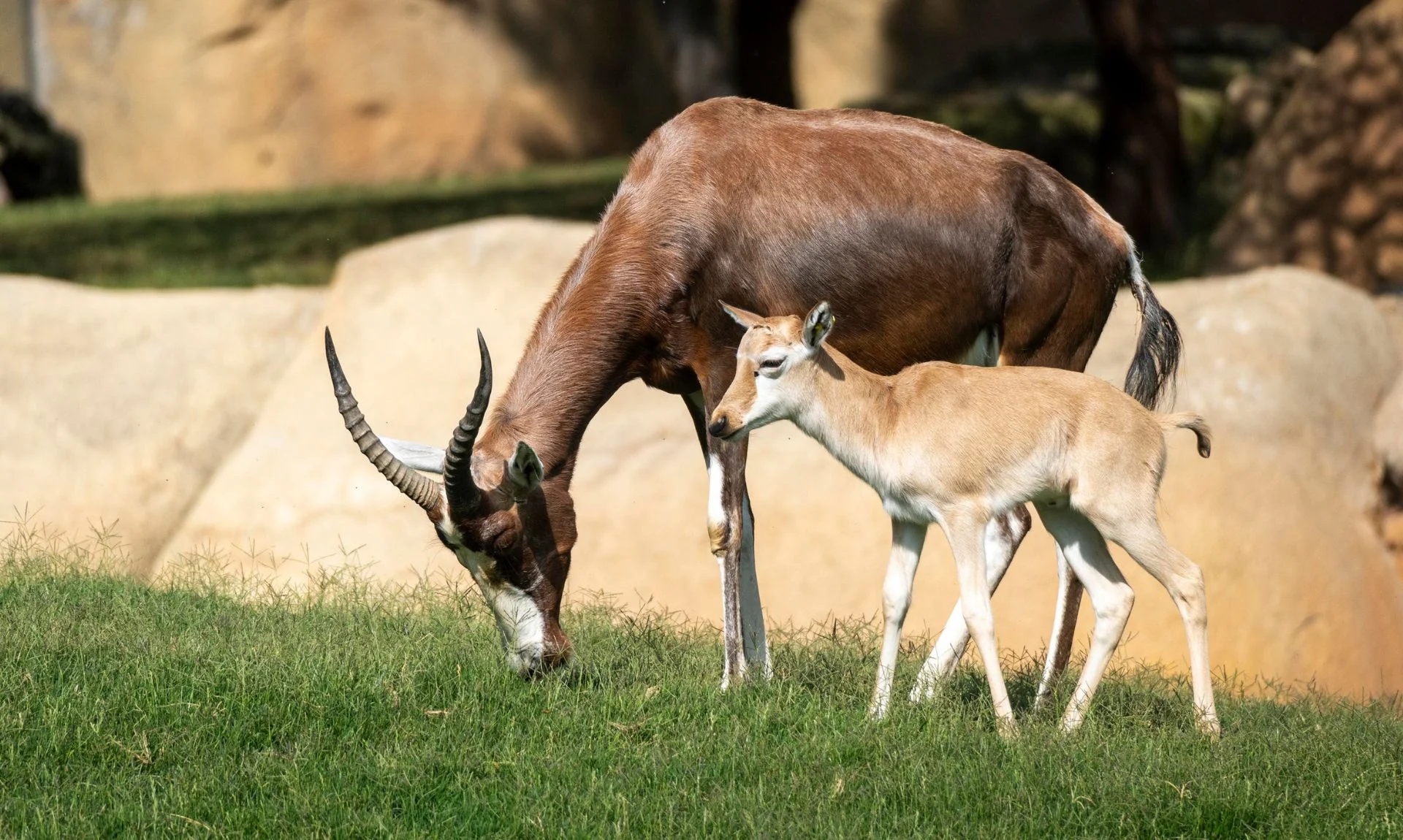 Dos preciosos blesbok, una raza de antílope, muestran el éxito del programa internacional de preservación de esta especie.