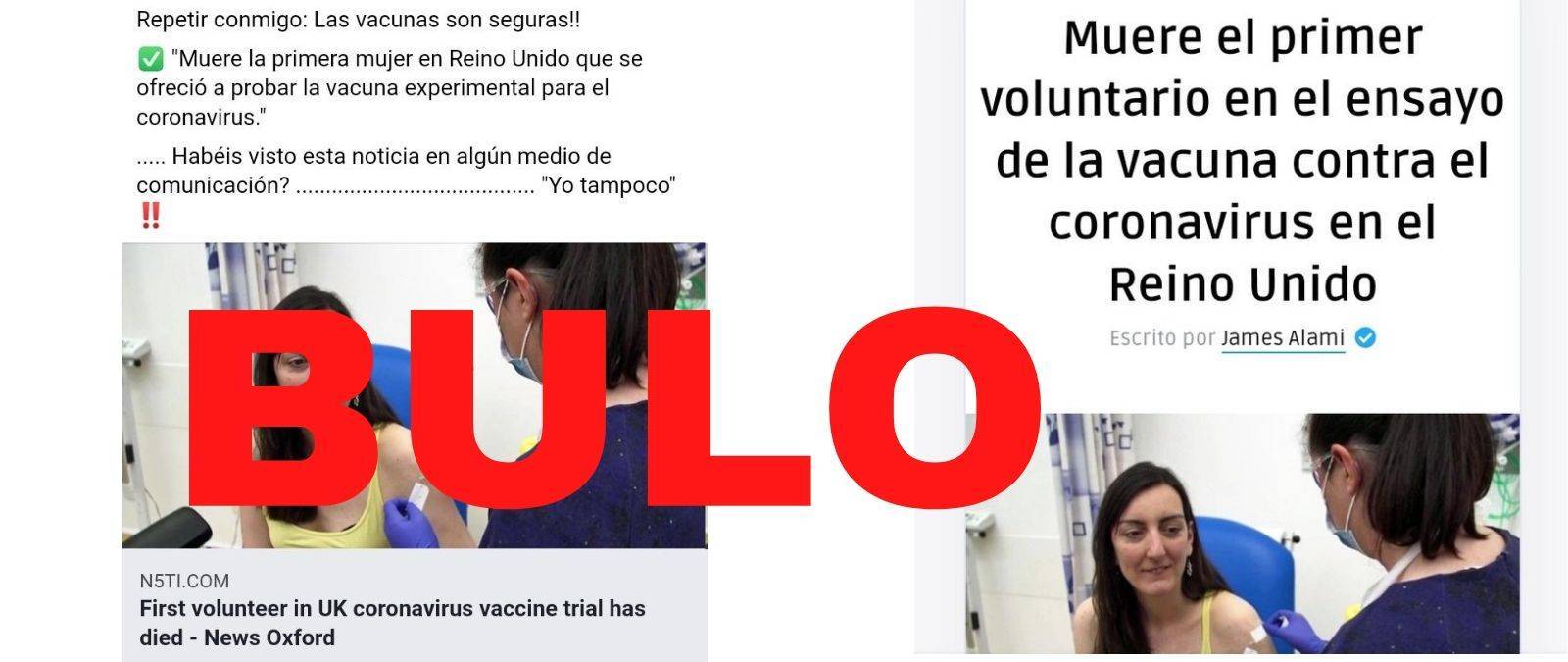 Por su par­te, el Depar­ta­men­to de Salud y Asis­ten­cia Social de Rei­no Uni­do tam­bién ha acla­ra­do que “las noti­cias que cir­cu­lan por redes socia­les acer­ca de que la pri­me­ra volun­ta­ria en Rei­no Uni­do en reci­bir el ensa­yo de vacu­na con­tra el coro­na­vi­rus ha muer­to son com­ple­ta­men­te fal­sas”.