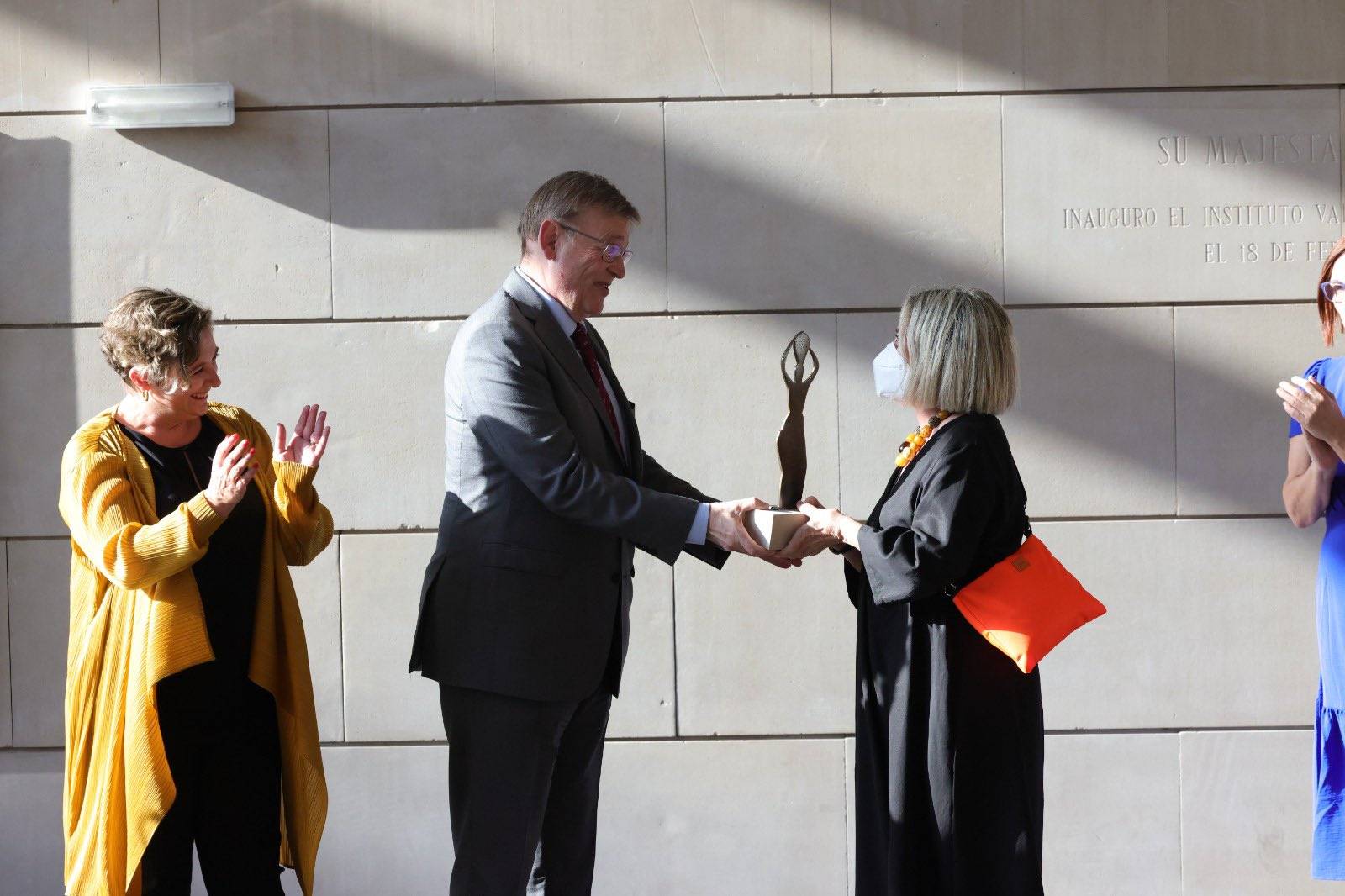 El president de la Generalitat, Ximo Puig, ha entregado el Premio Julio González a la artista Carmen Calvo (València, 1950), en el Institut Valencià d’Art Modern (IVAM). La creadora, Premio Nacional de Artes Plásticas en 2013, se convierte en la tercera mujer que lo recibe en los veintidós años de historia del galardón, tras Annette Messager en 2018 y Mona Hatoum en 2020. La primera artista valenciana que obtiene el prestigioso galardón.