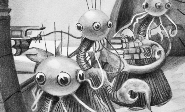 Un nue­vo ámbi­to para la ilus­tra­ción don­de se repre­sen­ta un ima­gi­na­rio meta­fó­ri­co a tra­vés de una ico­no­gra­fía retro­fu­tu­ris­ta del pro­ta­go­nis­ta de la actua­li­dad mun­dial, la Covid-19. Dis­to­pía de lo insó­li­to con­ver­ti­do en lo habi­tual. La con­cien­cia de habi­tar un mun­do dife­ren­te con la espe­ran­za pues­ta en la crea­ción artís­ti­ca.