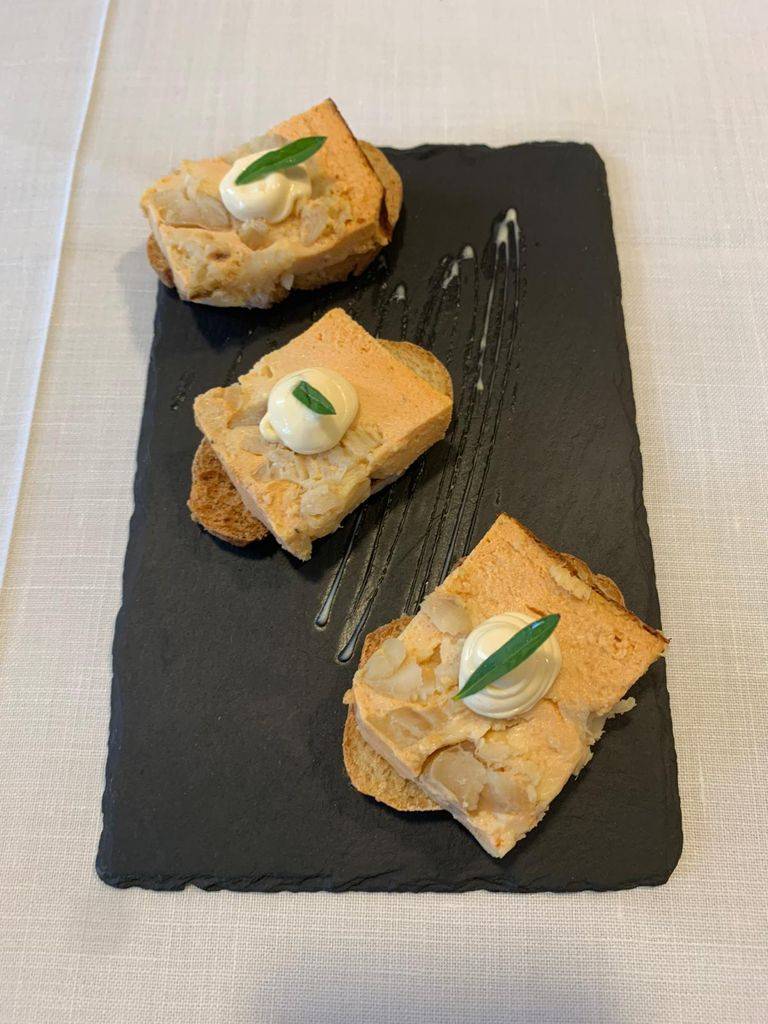 Seguimos con una tosta de sardina ahumada con berenjena, otra con foie y pato…