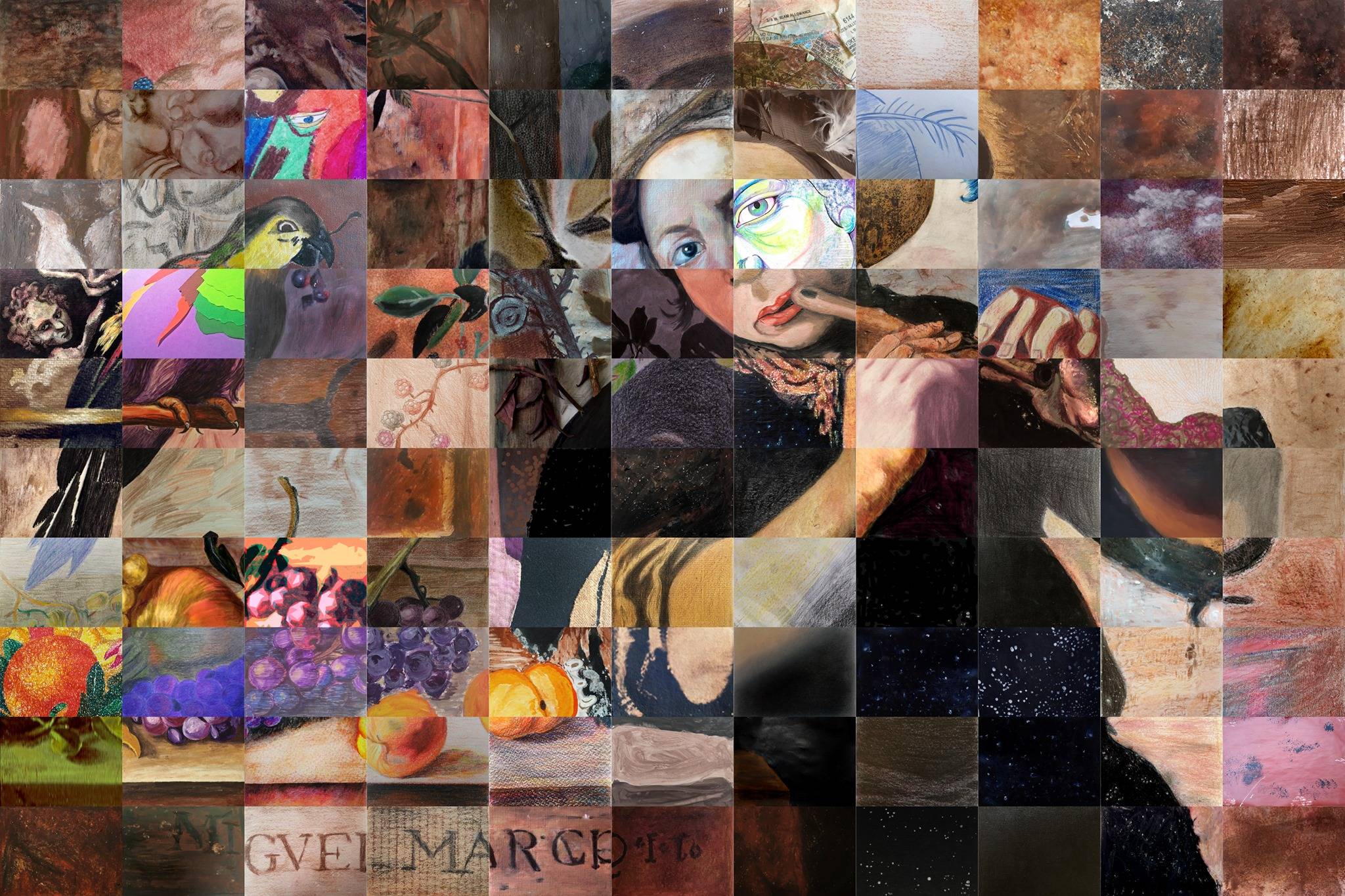 Así, los participantes han pintado su parte del lienzo desde sus casas empleando técnicas variadas para formar un mosaico lleno de diversidad artística y de creatividad.