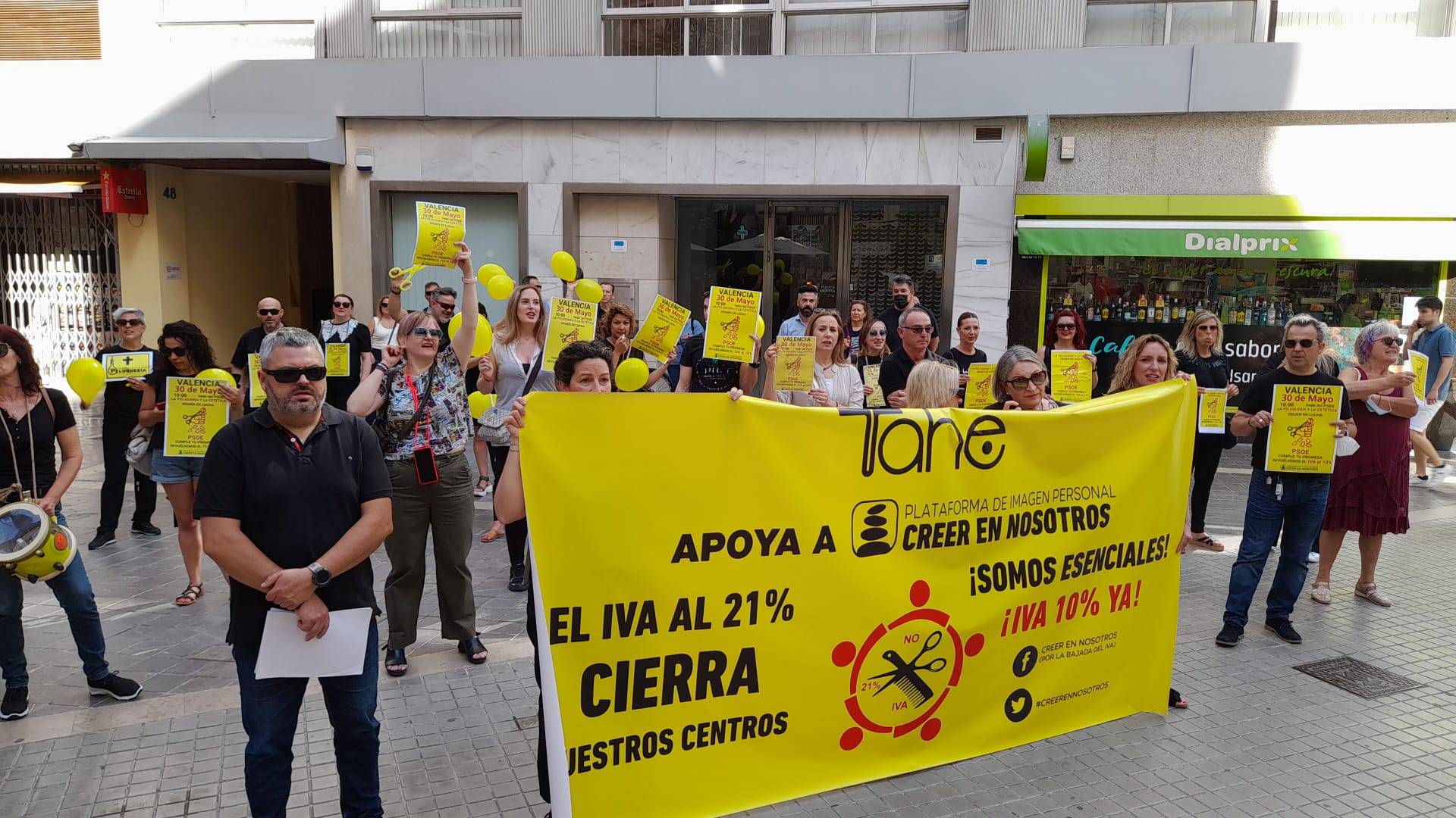 El pasado lunes tuvo lugar una nueva protesta frente a la sede del PSPV-PSOE en Valencia de la “Rebelión de las tijeras rotas” coordinada por el Gremio de Peluquería y Belleza de Valencia y la plataforma de imagen personal Creer en Nosotros, y apoyada por las federaciones y asociaciones de la Alianza Empresarial por la Bajada del IVA a la Imagen Personal debida a la gravísima situación de las pymes y autónomos del sector que siguen padeciendo una caída de facturación del 25,28% en comparación con la de 2019 según el I Estudio sobre la importancia de la mujer en la imagen personal del que se han presentado los datos de la Comunitat Valenciana en la concentración.