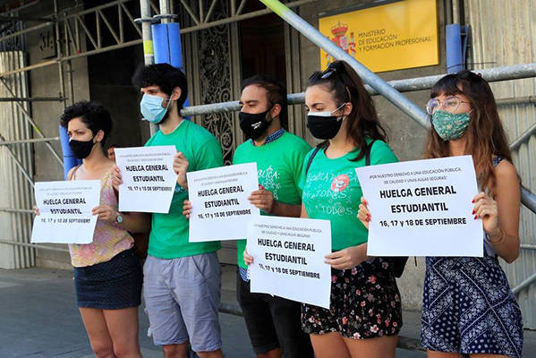La convocatoria de protestas y de reclamaciones ante el inminente inicio del curso escolar continúa. Si este mismo miércoles se presentaron ante el Ministerio de Educación 230.000 firmas para exigir una “vuelta segura” recabadas a través de change.org, en la misma mañana el Sindicato de Estudiantes (SE) anunciaba, también frente al ministerior, la convocatoria de una huelga en toda España para los días 16, 17 y 18 de septiembre. Y se unen también a las convocadas por los profesores los días 9 y 10 de septiembre en la Comunidad de Madrid. También anuncian concentraciones el 17 de septiembre en cada ciudad y en cada centro escolar o instituto.