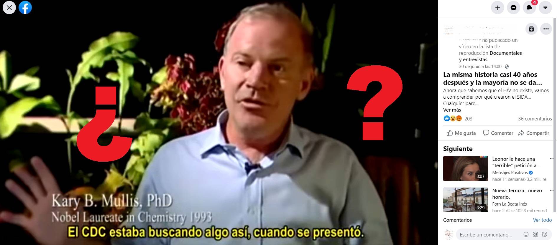 Pero del mismo modo aparecen en el fragmento dos de los representantes más conocidos del movimiento negacionista del sida: el virólogo Peter Duesberg y el químico estadounidense Kary B. Mullis, que ganó un Nobel en 1993 y también negaba la existencia del cambio climático.