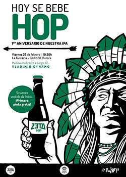 Se cumple un año desde que la cerveza Zeta Hop de Zeta Beer saliera al mercado, y lo celebra, este viernes 26 de febrero, en La Fusteria (Cádiz, 28), desde las 19:30 h. Una velada que traerá un grifo en exclusiva de esta American IPA que permanecerá en el local de Ruzafa durante todo el fin de semana.