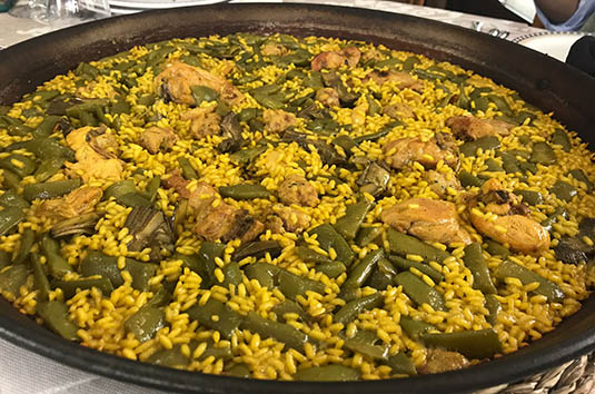En la sobremesa, el grupo de amigos que hemos viajado por las tierras de la paella con pilotes llegamos a una solución de consenso: llamar “paella valenciana de la huerta” al arroz de la defensa ortodoxa de Valencia, donde solo se admite el romero y los caracoles (dos elementos que saborizan de idéntica manera, por eso en el Rioja o ponen un ingrediente o el otro, pero no los dos juntos); y denominar “paella valenciana con pelotas” al arroz que se cocina al sur del río Júcar.