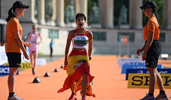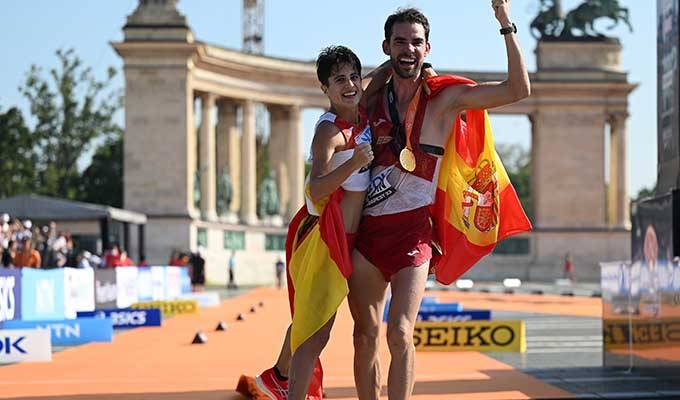 La marcha española se ha encumbrado como nunca en los mundiales de atletismo de Budapest al conseguir dos dobletes de oro históricos e inéditos en los 20 y los 35 km marcha. El emotivo abrazo entre los dos protagonistas, María Pérez y Álvaro Martín, al cruzar esta última la línea de meta en la mañana de este jueves, día 24 de agosto, era toda una explosión de emociones, de alegría, de recuerdos de lo sufrido para llegar hasta aquí.