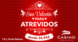 Para que puedas disfrutar un San Valentín inolvidable, Casino Cirsa Valencia ha preparado para los días 13 y 14 una gran cena con un menú exclusivo que contará con música romántica italiana y francesa interpretada en directo, así como un show especial para parejas lleno de juegos y sorpresas. Después de la cena, las parejas podrán disfrutar de una noche romántica y divertida con animación, música y copas.