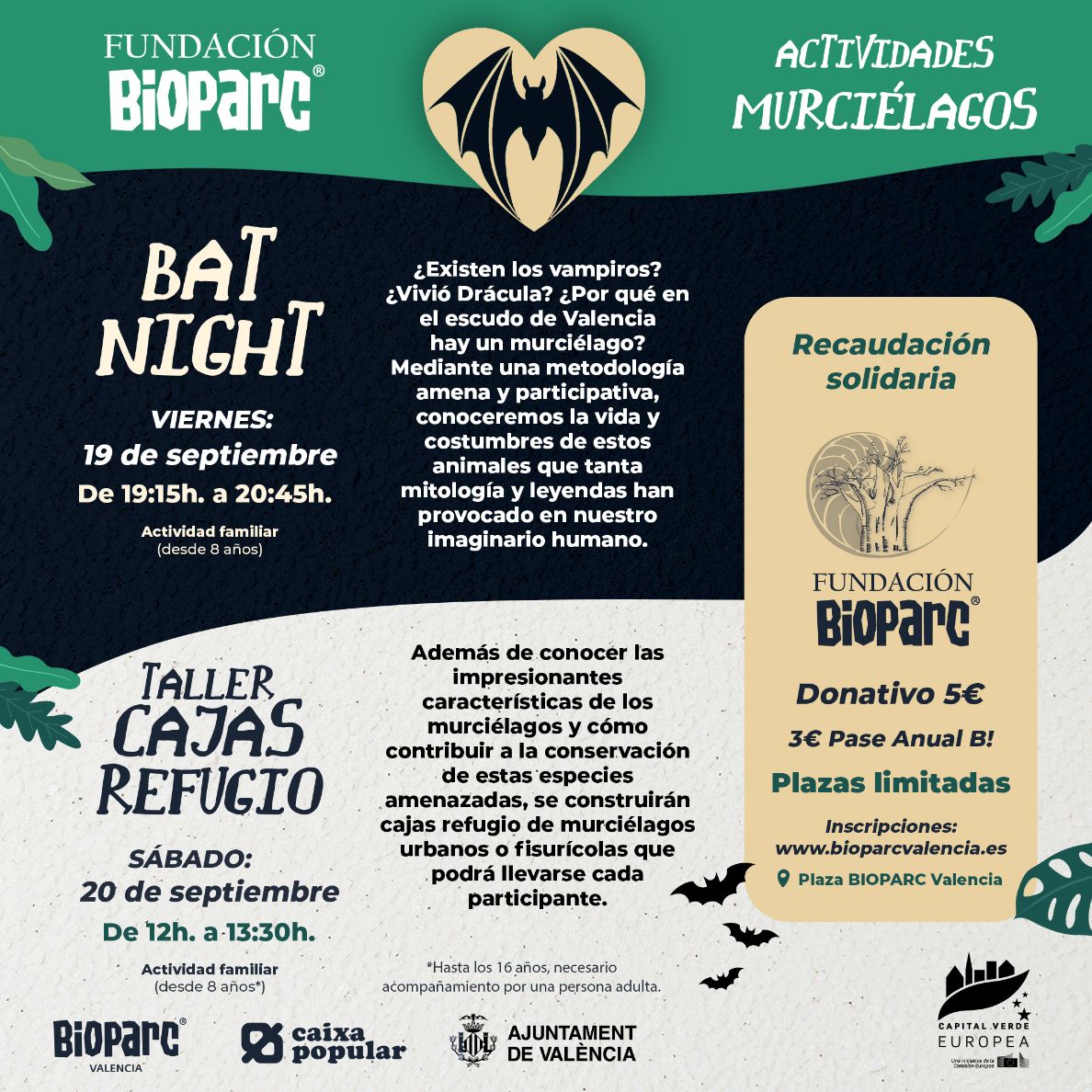 Con el objetivo de proteger la biodiversidad, desde BIOPARC se promueve la conservación no solo de las especies salvajes que albergan, sino que también se impulsan múltiples proyectos relacionados con las ciudades donde están presentes los parques. La Fundación BIOPARC junto con Caixa Popular desarrolla en Valencia diversas iniciativas centradas en los murciélagos, como las “Bat day” y “Bat night”, con enorme éxito entre familias y público general y que se retoman este otoño.