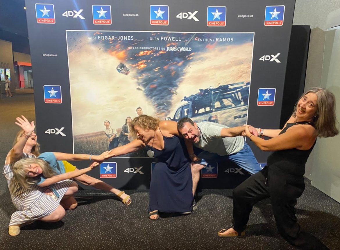 Por esta razón, los cines Kiné­po­lis Valen­cia han pre­pa­ra­do un lan­za­mien­to muy espe­cial que inclu­ye, ade­más de la ver­sión están­dar, una espec­ta­cu­lar pro­yec­ción en 4DX, duran­te la cual el públi­co vivi­rá en pri­me­ra per­so­na la adre­na­li­na de los pro­ta­go­nis­tas mien­tras tra­tan de cap­tu­rar un tor­na­do de fuer­za incon­tro­la­ble. Hoy mar­tes, algu­nos afor­tu­na­dos han podi­do dis­fru­tar ya de un pre­es­treno de la pelí­cu­la en este impre­sio­nan­te for­ma­to, exclu­si­vo de Kiné­po­lis y úni­co en toda la Comu­ni­dad Valen­cia­na.