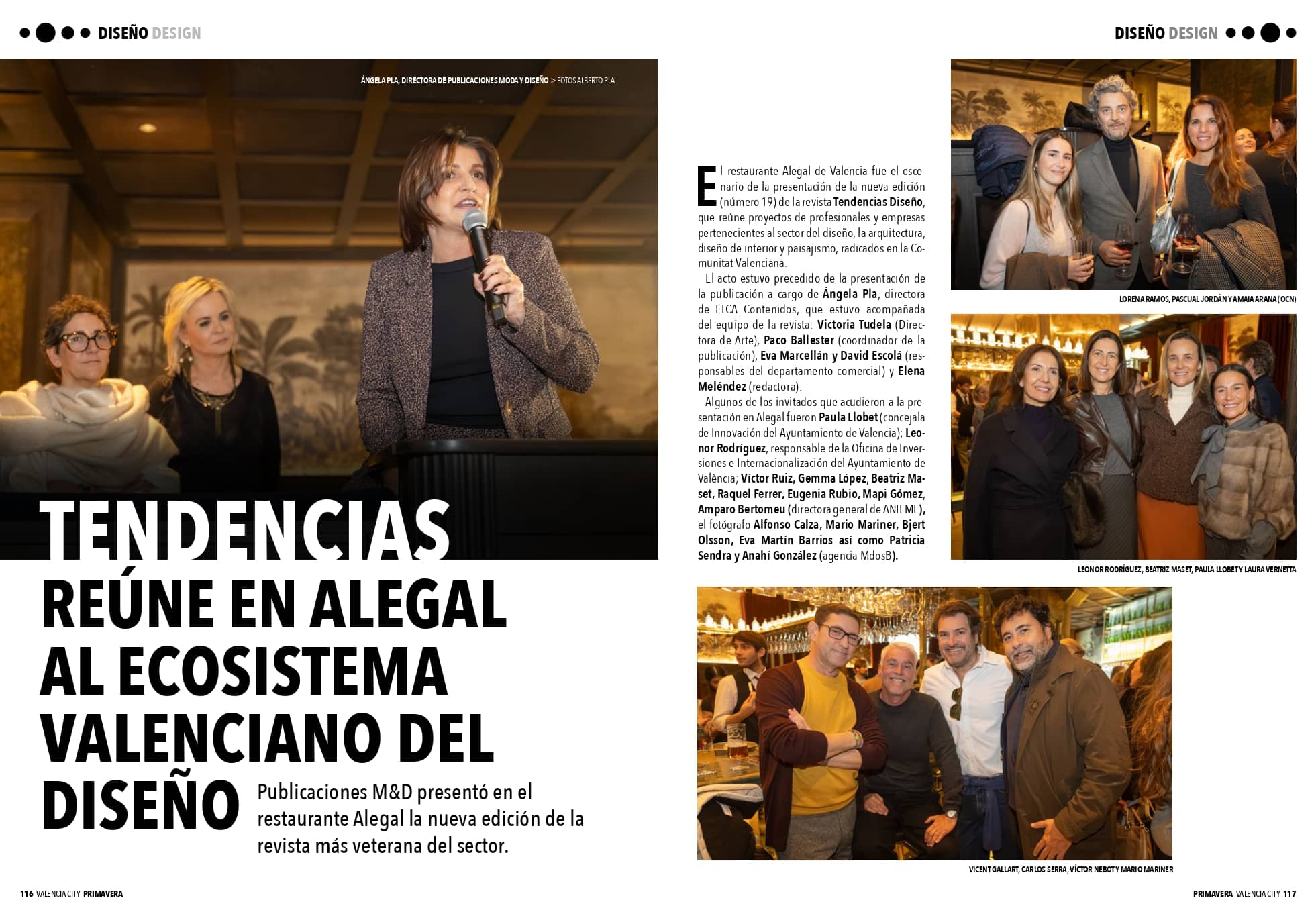 Gastronomía y enología ocupan buena parte de las páginas de esta nueva edición, con atención especial a las aperturas de restaurantes más destacadas y las actividades desarrolladas por la D.O. Utiel-Requena. Las páginas de diseño está dedicadas a la presentación del último número de Tendencias Diseño en el restaurante Alegal, con más de 300 invitados procedentes del ámbito del diseño, la arquitectura y el interiorismo.