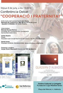 La Fun­da­ció Baleà­ria, coor­di­na­do­ra de acti­vi­da­des de carác­ter social, cul­tu­ral y depor­ti­vo o ambien­tal, orga­ni­za en el cen­tro cul­tu­ral La Llot­ge­ta de la Fun­da­ción Caja Medi­te­rrá­neo la pre­sen­ta­ción de los últi­mos libros de los escri­to­res Car­les Duar­te y Daniel Jover, hoy jue­ves a par­tir de las 20 horas.