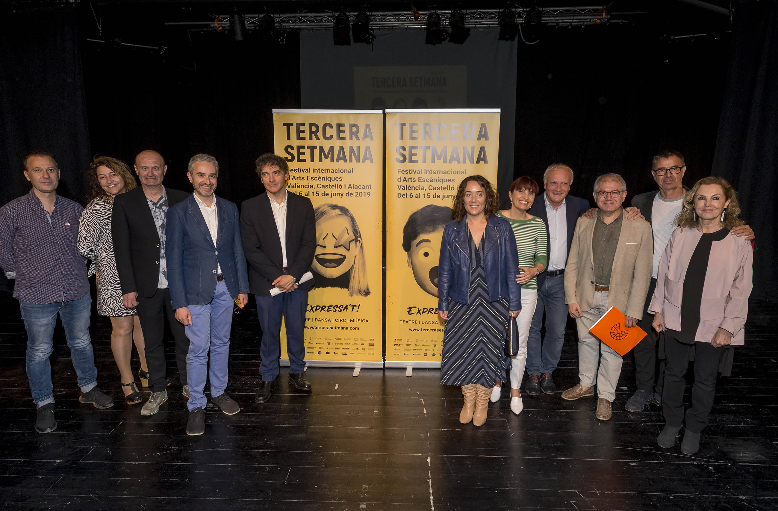 S’ha presentat la IV edició del Festival Internacional d’Arts Escèniques Tercera Setmana, que se celebrarà del 6 al 15 de juny a València, Alacant i Castelló. A l’acte, que ha tingut lloc a la Sala OFF, han assistit el Secretari Autonòmic de Cultura i Esport, Albert Girona; el Secretari Autonòmic de Turisme, Francesc Colomer; la Directora general de la Infància i l’Adolescència, Rosa Molero; el Director General de l’Institut Valencià de Cultura, Abel Guarinos; la Regidora de Cultura de l’Ajuntament de València, Gloria Tello; i el Director del Consorci de Museus de la Comunitat Valenciana, José Luis Pérez Pont, junt als directors del festival Paco Macià i Tomás Ibáñez, que han desgranat tota la programació davant els mitjans de comunicació assistents, i Mª Ángeles Fayos, Presidenta d’AVETID.