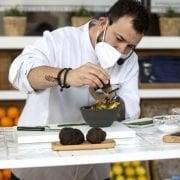 El cocinero valenciano, Alejandro Platero, presentó en el espacio gastronómico del Mercado de Colón, Mi Cub, la nueva tapa de invierno que tiene como invitada de excepción a la trufa negra del Alto Palancia. Cada temporada y bajo el título de “Las 4 estaciones de la Terreta”, se presenta una tapa con un producto local destacado.