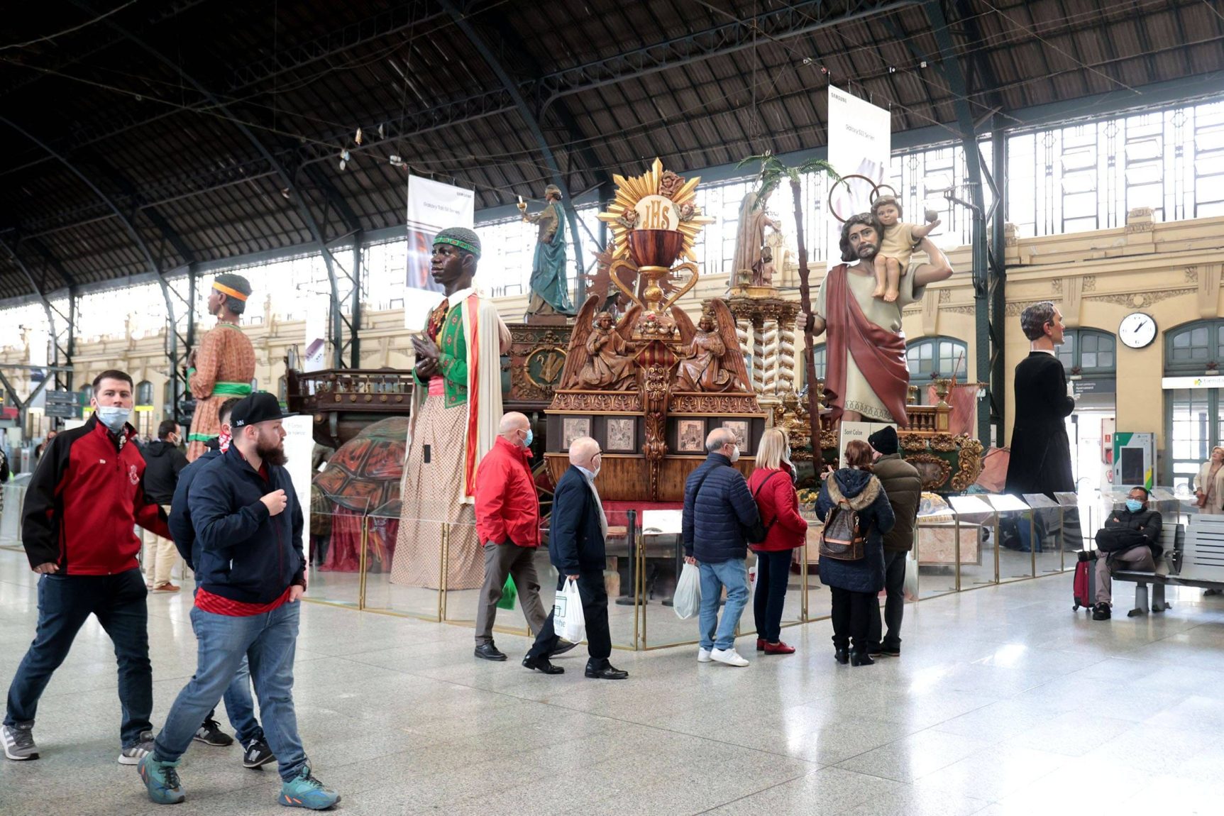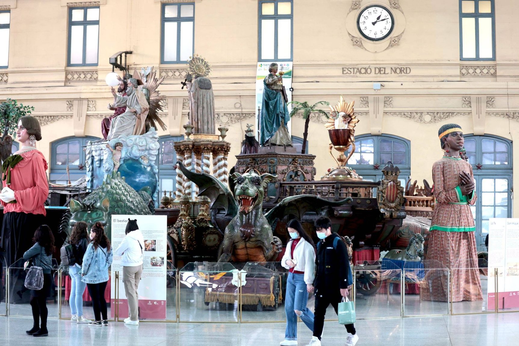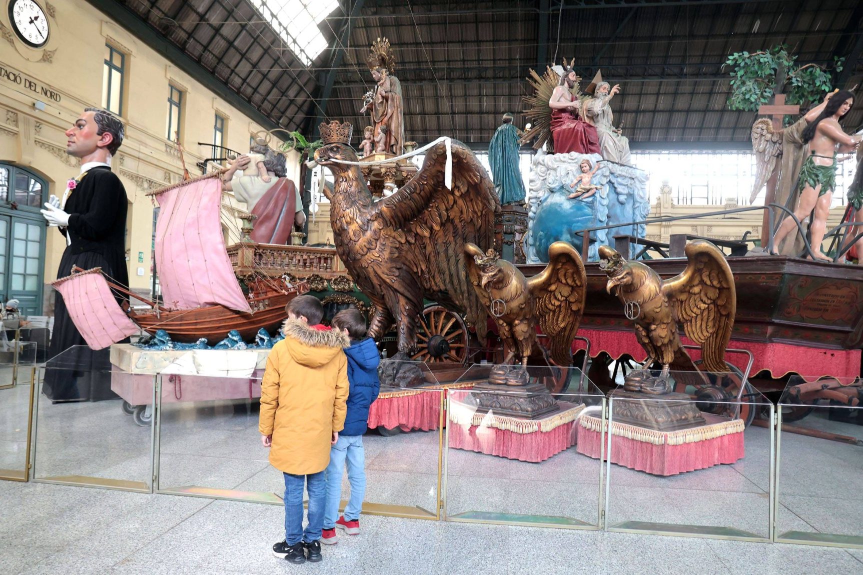 En con­cret, s’han mogut a l’Estació del Nord les carros­ses de la Mare de Déu dels Des­em­pa­rats, la San­tís­si­ma Tri­ni­tat, la Fe i el Sant Cal­ze; les imat­ges de Sant Cris­tò­fol i la bar­ca de Sant Nico­lau, i huit figu­res més, entre gegants, nanos i cava­llets. Totes estes peces for­men part de la mos­tra “Les roques de Valèn­cia a l’Estació del Nord”, la fina­li­tat de la qual és visi­bi­litzar l’origen i la impor­tàn­cia de la fes­ta gros­sa a la ciu­tat. El tras­llat ha estat auto­ritzat i super­vi­sat per la Direc­ció Gene­ral de Patri­mo­ni de la Con­se­lle­ria de Cul­tu­ra, i s’ha fet entre dilluns i dimarts, en hora­ri noc­turn.