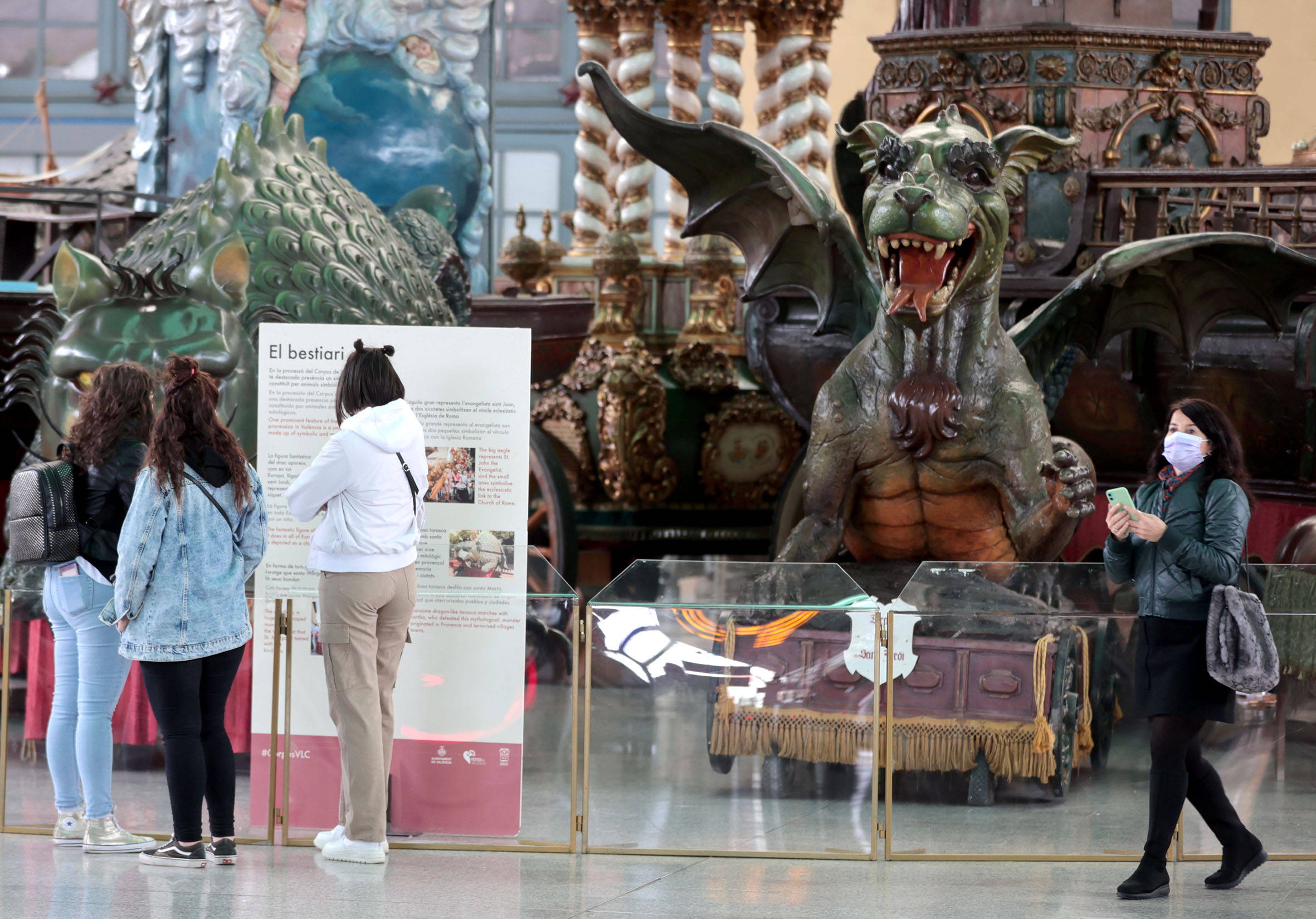 Qua­tre carros triom­fals, dos figu­res reli­gio­ses, els gegants, els nanos i els cava­llets ja es tro­ben a l’Estació del Nord, on roman­dran expo­sats men­tre dure la reha­bi­li­ta­ció de la Casa de les Roques, l’immoble del segle XV que els cus­to­dia. Els tre­balls es van ence­tar la set­ma­na pas­sa­da i està pre­vist que es pro­lon­guen sis mesos. Les figu­res s’han  tras­lla­dat entre este dilluns i dimarts, de nit. A cau­sa de les seues dimen­sions, alguns ele­ments de la pro­ces­só del Cor­pus s’han hagut de des­mun­tar per des­­plaçar-los. L’objectiu d’esta ini­cia­ti­va és doble: que cap peça patis­ca danys durant les obres i posar en valor la fes­ta gros­sa de la ciu­tat en un espai que fre­qüen­ta mol­ta gent.