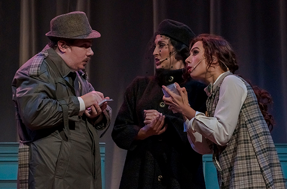 Aquí, tres intér­pre­tes se bas­tan y sobran para ir com­po­nien­do una diver­ti­da suce­sión de esce­nas liga­das por un piano ver­te­bra­dor y una serie de leit­mo­tivs en las com­po­si­cio­nes que des­pier­tan la com­pli­ci­dad en el públi­co.
