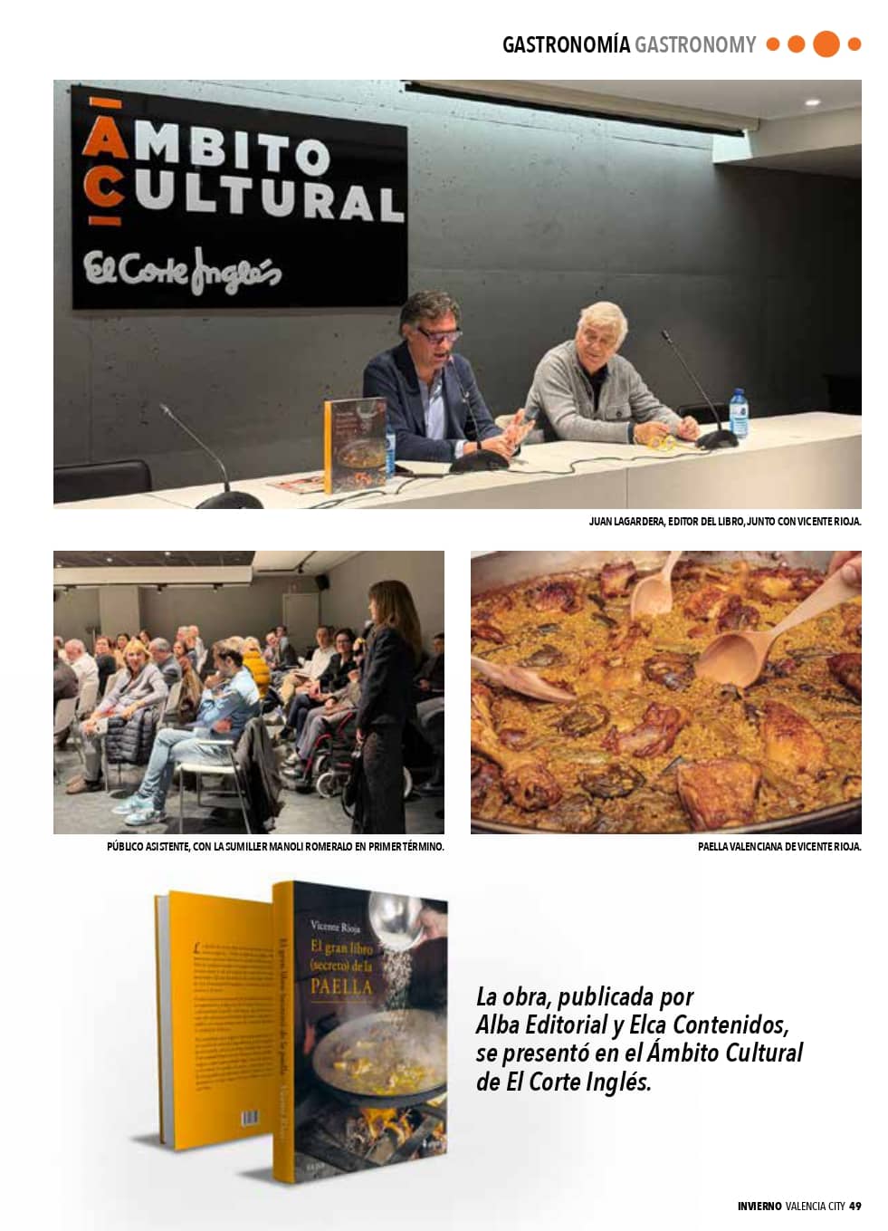 En gastronomía, destaca la presentación en Valencia de «El libro (secreto) de la paella», obra del chef Vicente Rioja, volumen editado por Alba y ELCA.