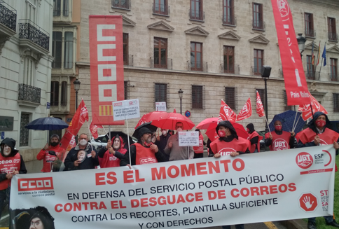 Los delegados/as de CCOO y UGT Correos de Valencia se han concentrado en la Plaza del Temple, dando inicio a su proceso de movilizaciones en todo el Estado para exigir a la Dirección de Correos, con su presidente Juan Manuel Serrano a la cabeza, que “cesen las políticas de desguace del operador público” y han reivindicado “un Modelo Postal Público sostenible, eficaz, moderno y eficiente”.