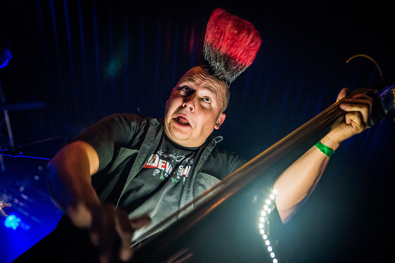 Inspirados por el horror punk y la serie B, la banda germana Mad Sin —capitaneada desde 1987 por Koefte de Ville—, comenzó su andadura tocando country, rockabilly y soul hasta por las calles de una ciudad que, por entonces, estaba divida por un muro. Hoy es una de las grandes referencias el psychobilly europeo, como demostrarán este miércoles 6 de diciembre (19:30 h.) sobre el escenario de 16 Toneladas. La marca de la casa es su capacidad de combinar su estilo acelerado y guitarrero con todo tipo de los palos del rock (punk, metal, country…) y llevárselos a su terreno.