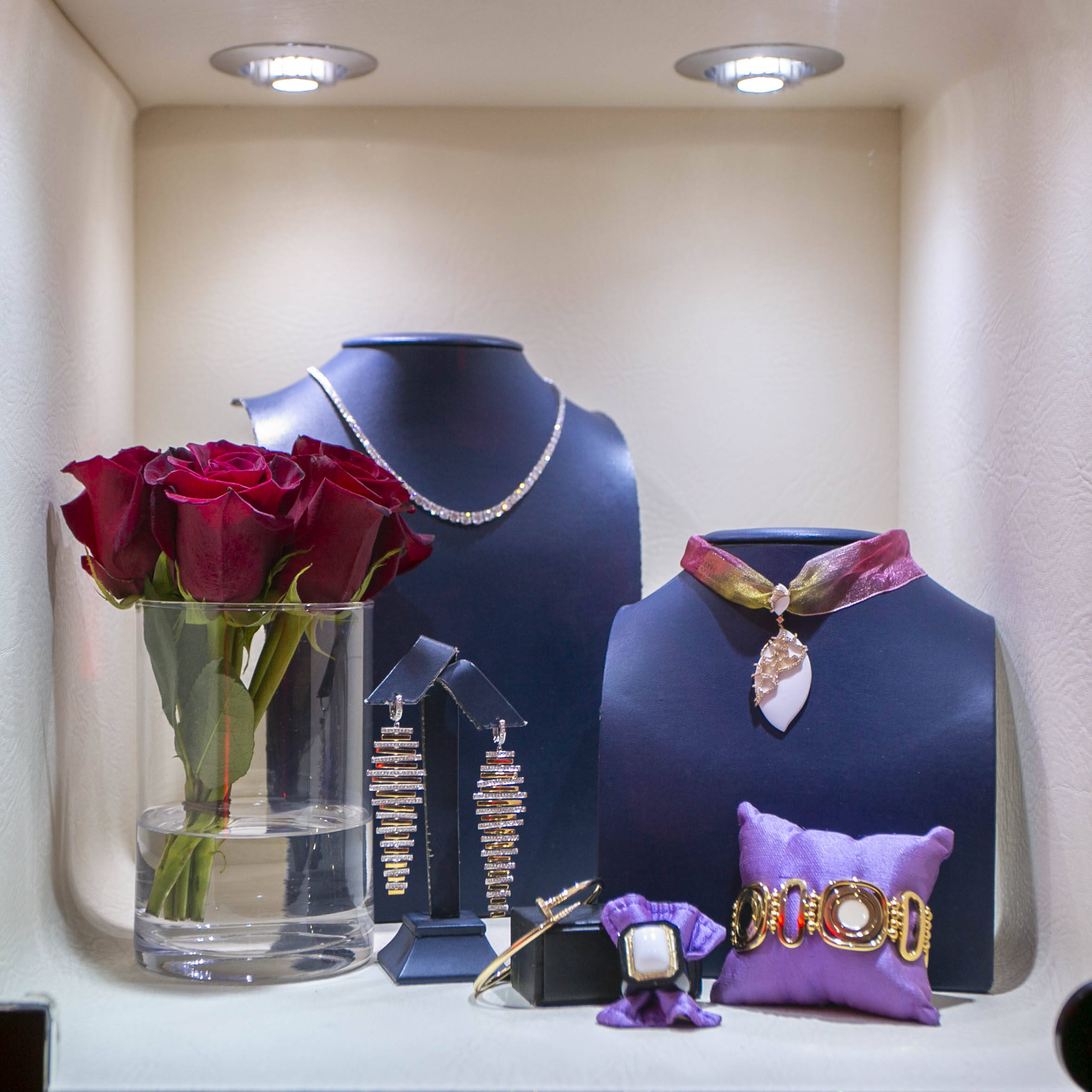Un collar babe­ro de coral talla­do y dia­man­tes, bra­za­le­tes de bri­llan­tes art decó, un impre­sio­nan­te bro­che mari­po­sa de zafi­ros y dia­man­tes o jades ver­des con tur­ma­li­nas fue­ron algu­nas de las pie­zas de la colec­ción de Mar­fil Joye­ros que pudie­ron des­cu­brir los invi­ta­dos duran­te el coc­tel que sir­vió Anco­ra Cate­ring.