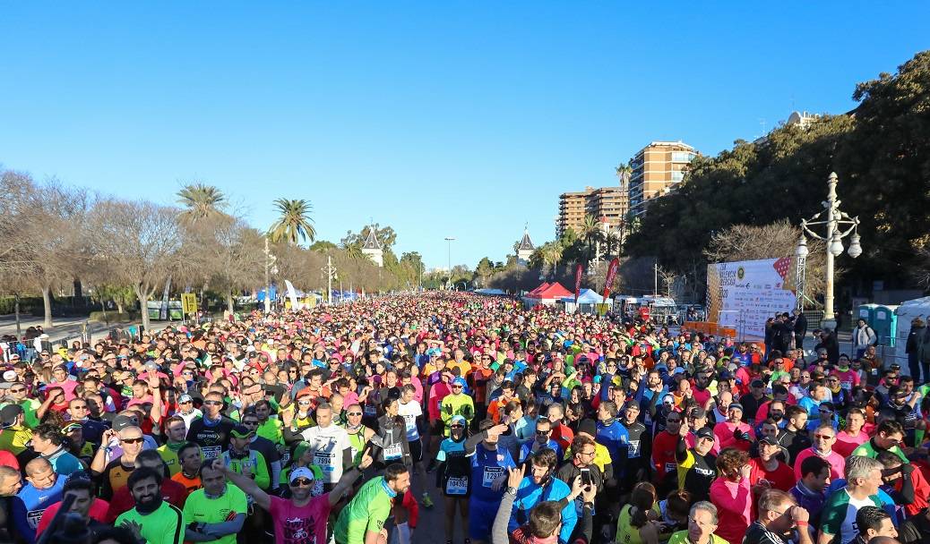 Miles de atletas tomaron la salida desde la Alameda a partir de las 9:30h para disfrutar de un circuito rápido y llano tras la salida de Chimo Bayo a ritmo de su clásico ¡Hu-Ha!.