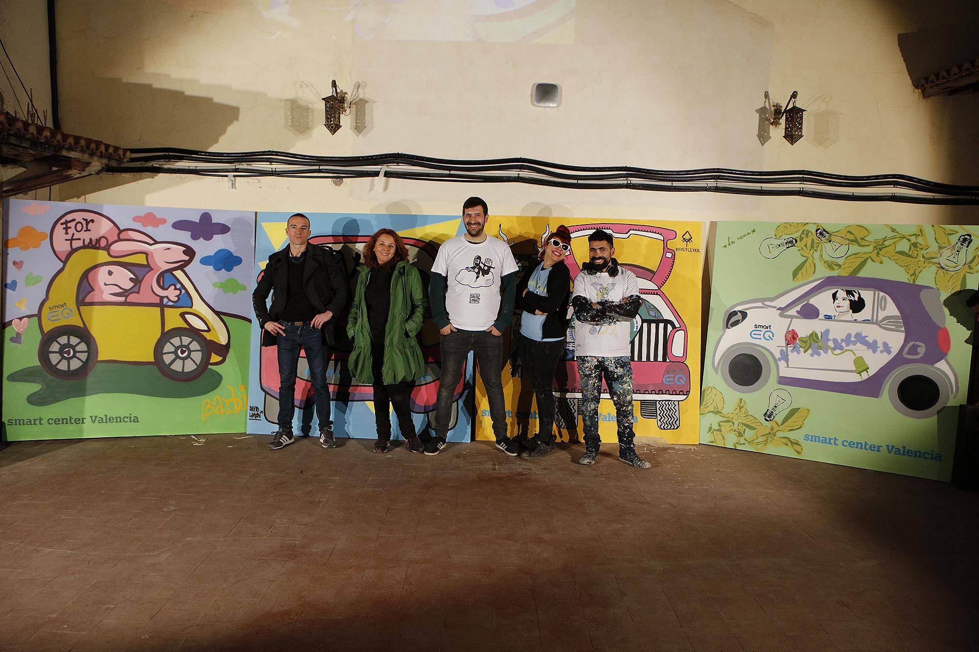 Cua­tro artis­tas loca­les han dise­ña­do y crea­do mura­les en varios pun­tos de la ciu­dad en los que se refle­ja la per­so­na­li­dad del nue­vo smart EQ, un vehícu­lo urbano eléc­tri­co dise­ña­do para mover­se con liber­tad y efi­cien­cia por la ciu­dad. Las obras for­ma­rán par­te de la cam­pa­ña de comu­ni­ca­ción que Mer­­ce­­des-Benz Valen­cia lle­va­rá a cabo duran­te las pró­xi­mas sema­nas.