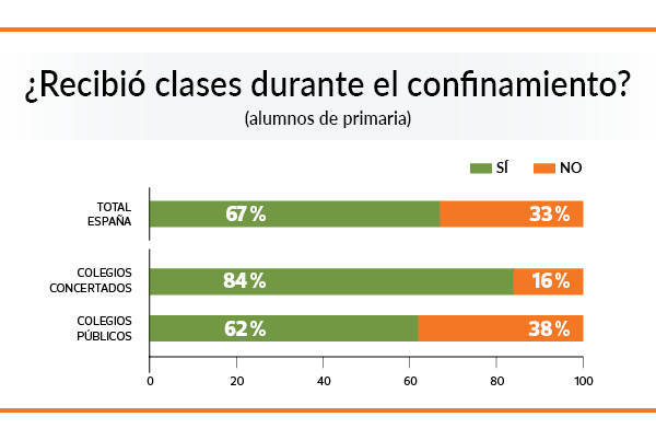 Y es que, según otra encues­ta de la orga­ni­za­ción, uno de cada tres niños de pri­ma­ria no reci­bió cla­ses on line los últi­mos tres meses del cur­so pasa­do.