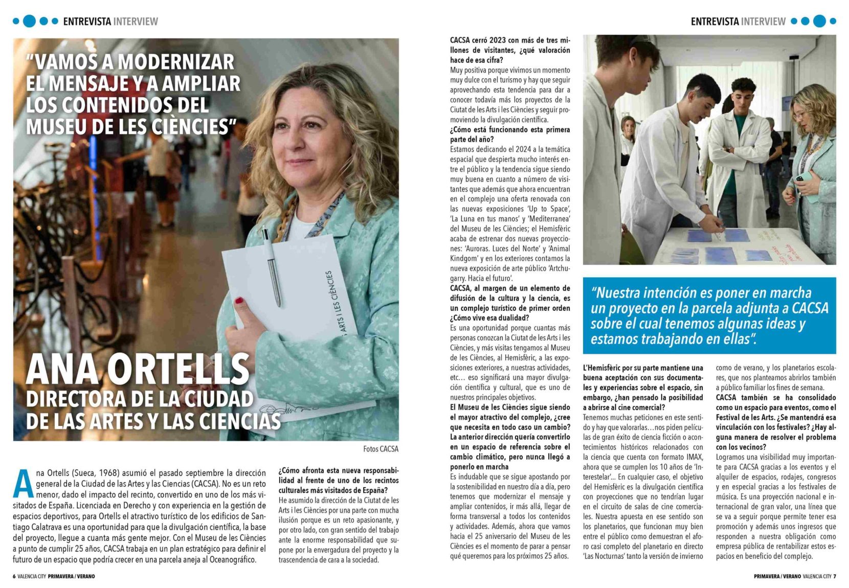 La Ciu­dad de las Artes y las Cien­cias tie­ne una vital trans­cen­den­cia duran­te todo el año, pero más si cabe en el perio­do esti­val con mul­ti­tud de acti­vi­da­des. Es por ello, que Valen­cia City ha que­ri­do cono­cer de cer­ca los nue­vos pro­yec­tos e ideas de la enti­dad de la mano de su direc­to­ra, Ana Ortells.