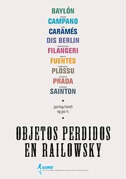 Además, el viernes 30 de septiembre a las 19:30 horas la fotogalería Railowsky inaugura nueva exposición. Se trata de una muestra colectiva en la que van a participar ocho fotógrafos y un pintor titulada Objetos perdidos en Railowsky. Contará con trabajos de Baylón, Javier Campano, Vari Caramés, Dis Berlin, Francesco Filangeri, Pablo Fuentes, Bernard Plossu, Concha Prada y Patrick Sainton.