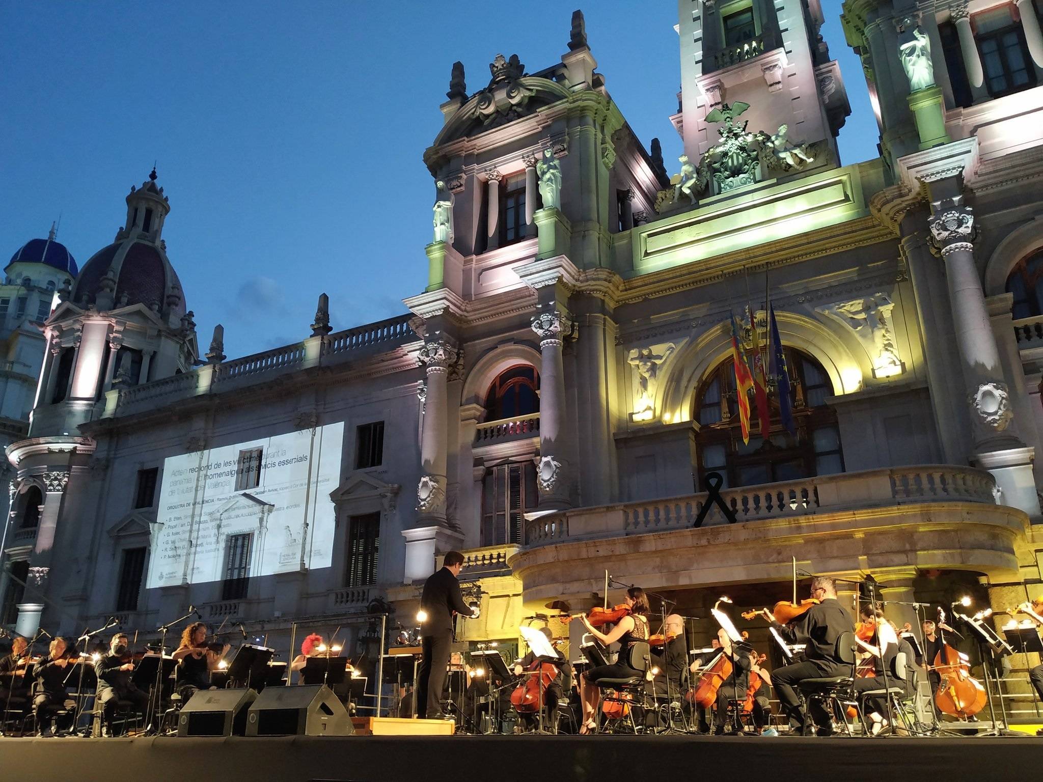 Valen­cia ha ren­di­do home­na­je a las víc­ti­mas del coro­na­vi­rus y a todos aque­llos tra­ba­ja­do­res y tra­ba­ja­do­ras que des­de la pri­me­ra línea estu­vie­ron luchan­do con­tra la pan­de­mia o pro­cu­ran­do que nin­gún ser­vi­cio esen­cial le fal­ta­se a la ciu­da­da­nía. El acto, enca­be­za­do por el alcal­de Joan Ribó, que estu­vo acom­pa­ña­do por el pre­si­dent de la Gene­ra­li­tat, Ximo Puig, estu­vo mar­ca­do por la sobrie­dad e inclu­yó la actua­ción de la Orques­ta de Valen­cia y el reci­ta­do de poe­mas de Marc Gra­nell a car­go de Vicent Camps. El acto cul­mi­nó con el dis­pa­ro de sie­te pal­me­ras blan­cas dis­pa­ra­das por las piro­tec­nias Caba­ller FX, Her­ma­nos Caba­ller y Vul­cano. El acto estu­vo con­du­ci­do por la perio­dis­ta Cla­ra Mar­zà.