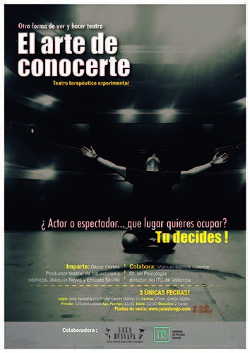 Sala Russafa apuesta por un concepto abierto de las artes escénica, donde la audiencia puede adoptar un papel activo. Un ejemplo es la programación de piezas como las que esta semana rompen la cuarta pared para involucrar al público. Es el caso de El arte de conocerte, que el sábado 22 ofrece su tercera sesión. Se trata de una iniciativa que utiliza las artes escénicas como herramienta de crecimiento personal y que requiere inscripción previa en la web del teatro, para participar como intérprete o asistir como espectador.