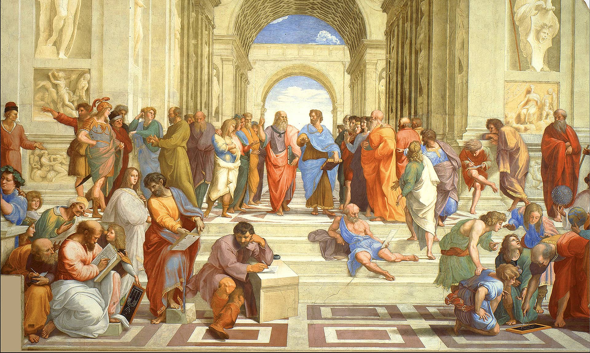 Imagen superior: La Escuela de Atenas, fresco de 1512 de Rafael Sanzio, Palacio Apostólico, Ciudad del Vaticano.