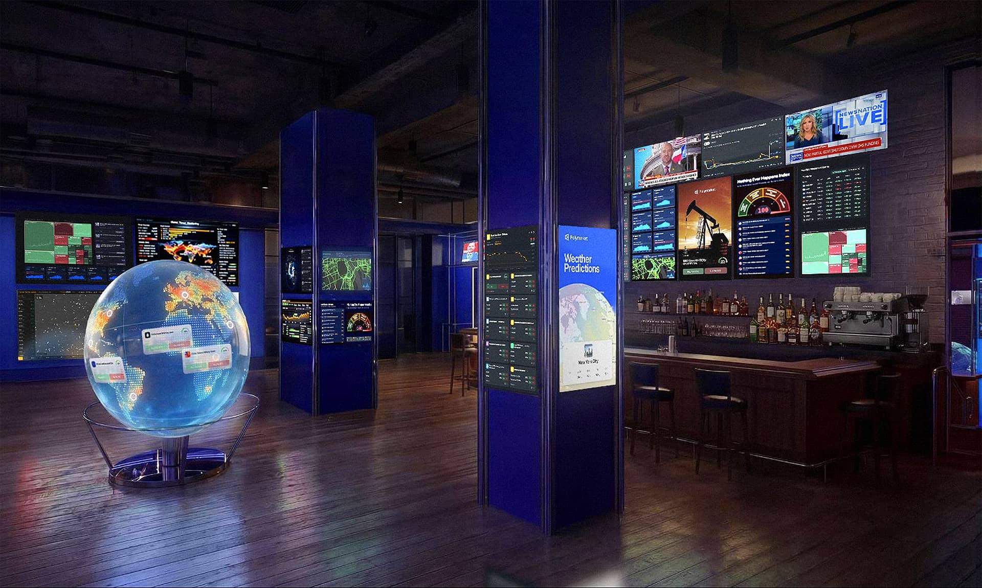 Imagen del Bar The Situation Room que acaba de inaugurar en Washington D.C. la empresa de mercados de predicciones Polymarket