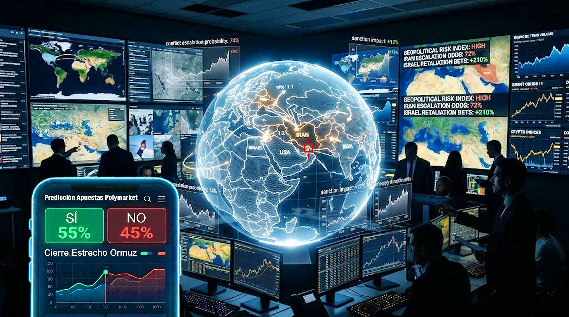 Lo último es que Polymarket acaba de inaugurar este 18 de marzo en el centro de la ciudad de Washington, el Bar «The Situation Room», (que podríamos traducir por Sala de Situaciones, o Sala de Emergencias). The Situation Room es el mismo nombre que puso a una foto suya el fotógrafo oficial de la Casa Blanca Pete Souza, que él tomó en una sala de reuniones de la Casa Blanca. Su imagen muestra al presidente de los EE.UU. Barack Obama con su equipo de seguridad nacional en la Sala de Situaciones de la Casa Blanca recibiendo las imágenes en directo de la Operación Lanza de Neptuno, que condujo a la muerte de Osama bin Laden. La empresa Polymarket describe su recién inaugurado local con ese nombre como «…el primer bar del mundo dedicado al seguimiento de la situación mundial» y planea ofrecer en él la misma información que los apostadores de los mercados de predicción siguen online. En su interior, los clientes encontrarán pantallas con feeds (flujos de contenido) de redes sociales, mapas de seguimiento de vuelos, terminales de Bloomberg, etc. y paneles que muestran las probabilidades del mercado de predicciones en tiempo real. No hace falta comentarios sobre la osadía de la empresa con esta operación.