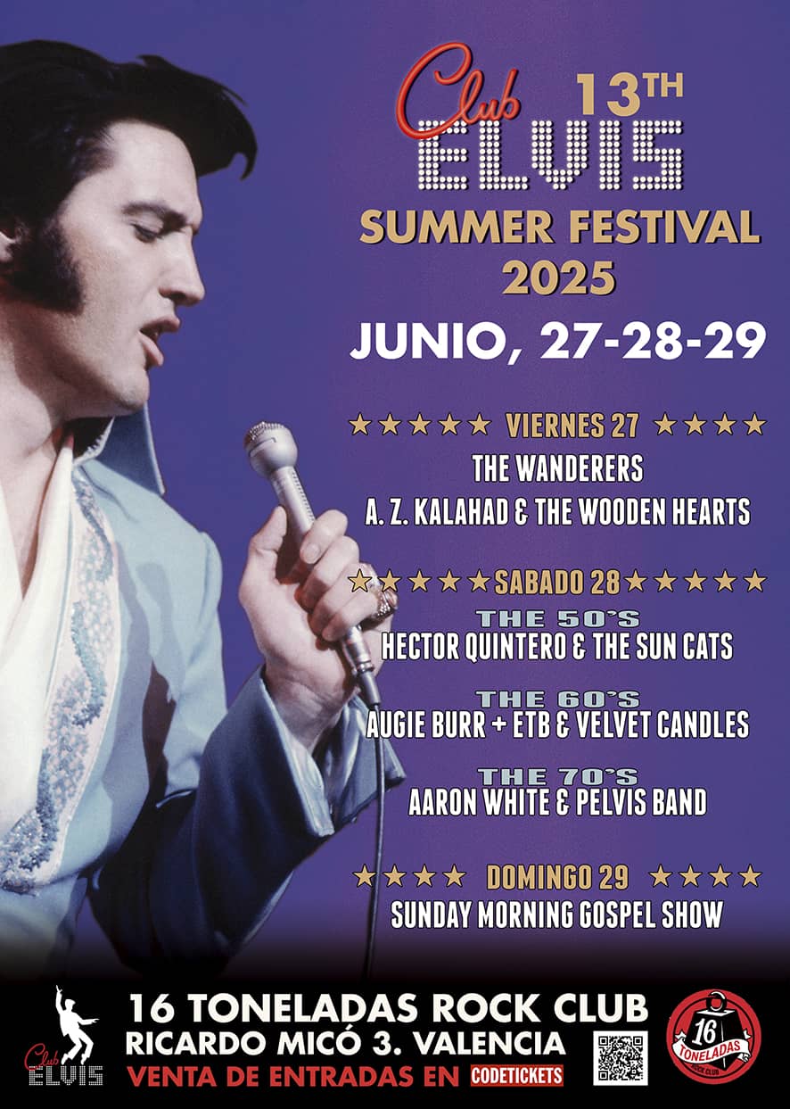 Este año, el festival rinde un homenaje especial al 90 aniversario de Elvis Presley con una programación llena de conciertos, actividades y eventos exclusivos que reunirán a bandas y artistas procedentes de Valencia, Madrid, Barcelona, Euskadi y Canarias.