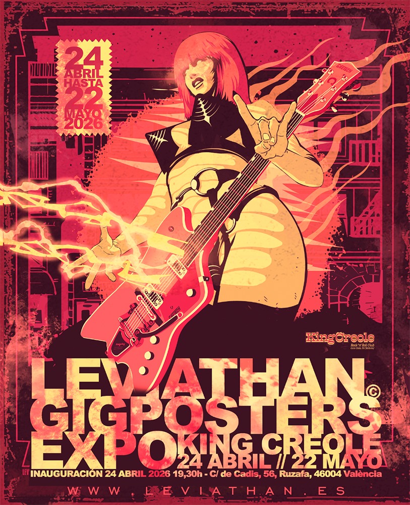 El pró­xi­mo 24 de abril la sala King Creo­le de Valen­cia aco­ge­rá la expo­si­ción «Gig­pos­ters» del artis­ta Leviathan. Se tra­ta de una retros­pec­ti­va de su tra­ba­jo en el mun­do de la músi­ca y el rock&roll. Se darán cita allí, gran­des artis­tas, pro­mo­to­res y músi­cos de la indus­tria. Una gran opor­tu­ni­dad para dis­fru­tar de su mun­do y toda la ima­gi­ne­ría ¨rock¨ de nues­tro artis­ta mas inter­na­cio­nal. Esta­rán en ven­ta gran par­te de las obras expues­tas, edi­cio­nes limi­ta­das, rare­zas y momen­tos épi­cos de su carre­ra por tiem­po limi­ta­do.