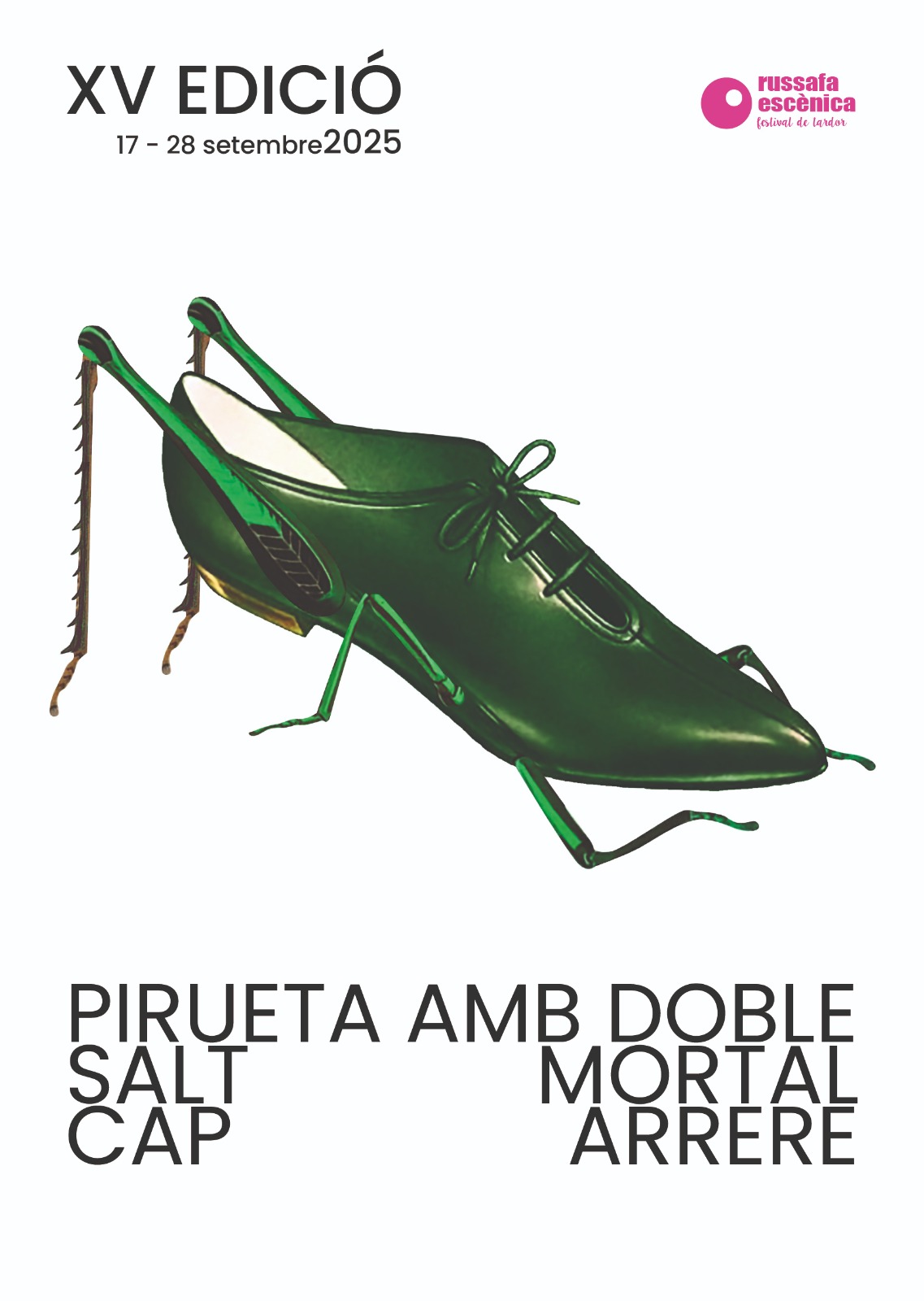 Un collage del artista valenciano Miguel Hache protagoniza el cartel de la nueva edición de Russafa Escènica-Festival de Tardor. Se trata de un curioso zapato – saltamontes que encaja dentro de un diseño a cargo de Vicent Ribelles. “Cuando me contaron el lema del festival, me venían a la cabeza ideas con las que quería trabajar. Una de ellas era utilizar un elemento cotidiano vinculado a los pies, que son los que impulsan el salto. Pero también quería incluir la naturaleza, en alusión a las piruetas que tiene que hacer por el cambio climático”, explica el ilustrador, escultor y artista fallero. Su última creación ‘NADA’, dentro de la categoría de Fallas Experimentales, fue un homenaje a las víctimas de la Dana que atrajo la atención mediática y el apoyo del público.