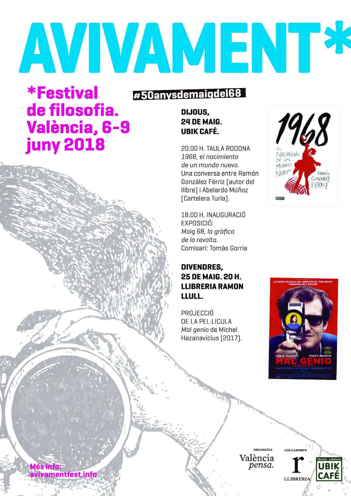 #50añosdeMayodel68 lle­ga a Valen­cia los días 24 y 25 de la mano de Avi­va­ment*, el Fes­ti­val de Filo­so­fía en Valen­cia. La pro­gra­ma­ción del even­to está enfo­ca­da a expo­ner y expli­car en pro­fun­di­dad las cau­sas y con­se­cuen­cias de este hecho his­tó­ri­co.