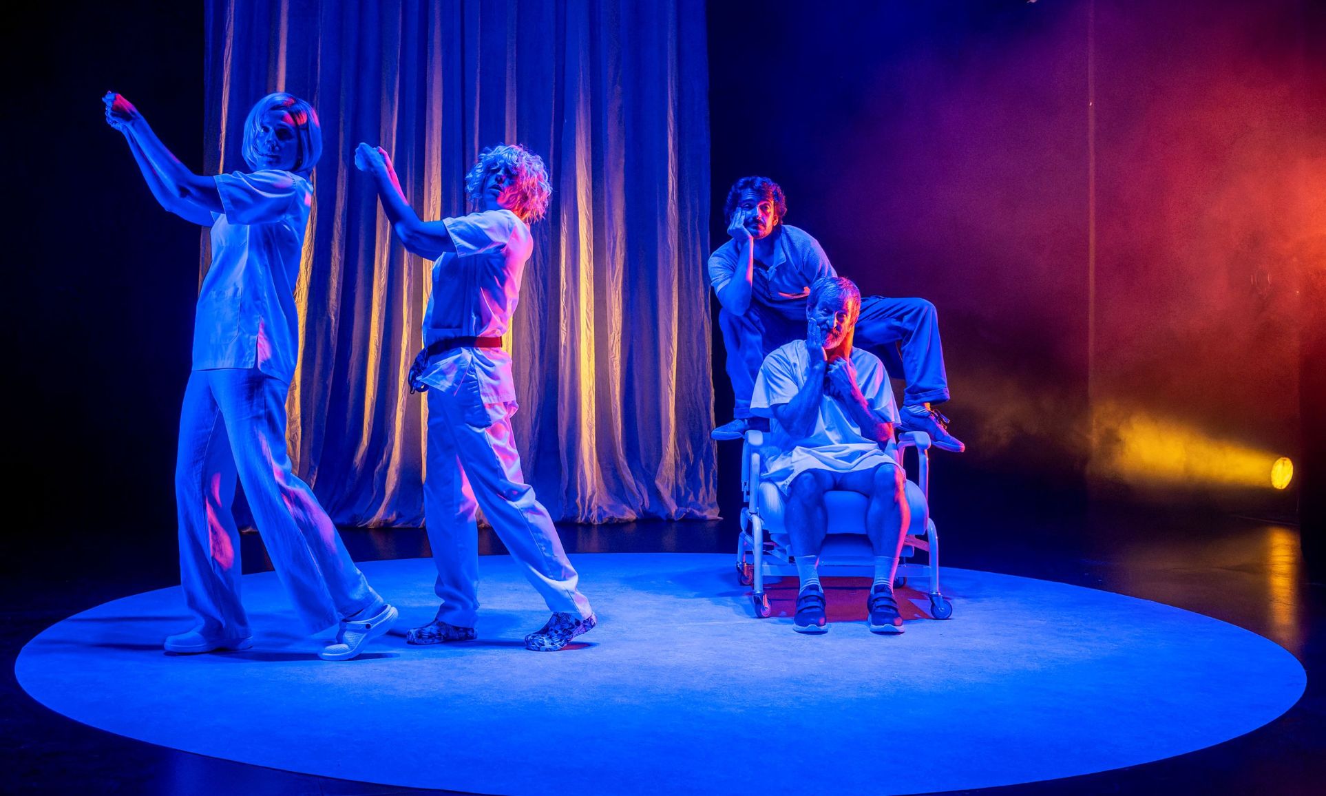 Una comèdia, segons la seua autora i directora: “amb apunts absurds i una posada en escena que usa recursos del teatre brechtià per a intentar escapar de la hipnosi de la narrativitat establida. Una història en la qual coneixerem la família de Claudi, ancià que cau, que cau com cauen les persones i que necessitarà l’hospital i la família i respostes davant de la necessitat de sostindre les cures que necessitem quan envellim”.