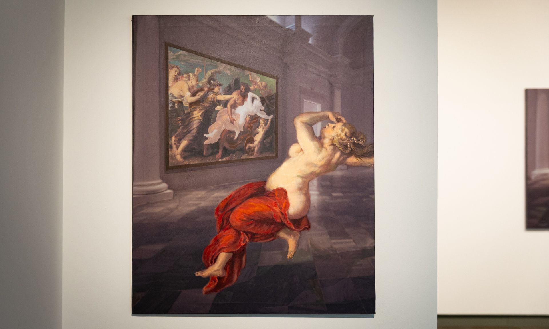 La exposición propone un amplio recorrido por la trayectoria de Isabel Oliver, desde los años setenta hasta la actualidad, a través de 60 obras dividas en dos grandes temáticas: ‘Cuerpos que huyen’ y ‘Paisajes de barbarie’ dentro de las cuales se pueden observar algunas de sus series más representativas. Isabel Tejeda ha explicado que estas dos temáticas “cruzan toda la trayectoria de Oliver desde sus inicios, en los que denunciaba la cosificación de la mujer, hasta sus últimas obras, donde denuncia la barbarie de los conflictos bélicos actuales, un total de 18 piezas, realizadas ex profeso para la muestra”. A través de un lenguaje visual potente y comprometido, la artista aborda cuestiones como la representación de la mujer, la violencia, la crisis migratoria o la vulneración de los derechos humanos.