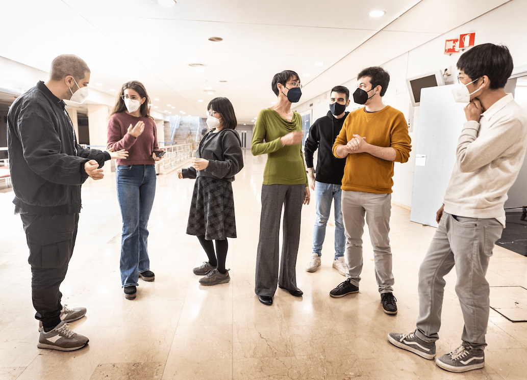 Elena Mendoza també s’ha mostrat molt contenta amb l’inici de la seua residència i ha destacat que el grup de les seleccionades i seleccionats “és molt variat i molt compromés amb el treball que està fent, i com són de cultures diferents, suposa un enriquiment comú”. En este sentit i com a exemples de les i els integrants xinés, sèrbia i japonesa, ha explicat diversos aspectes d’este enriquiment com són el treball musical sobre la tradició xinesa del dibuix des de l’època medieval; l’acte corporal de fer música o l’aplicació d’un repertori de sons vocals trets de la fonètica japonesa. Finalment, la compositora ha ressaltat respecte a la paritat de gènere del grup que “tenim paritat i no em vaig haver d’esforçar per guardar-la a causa del nivell tan alt”.