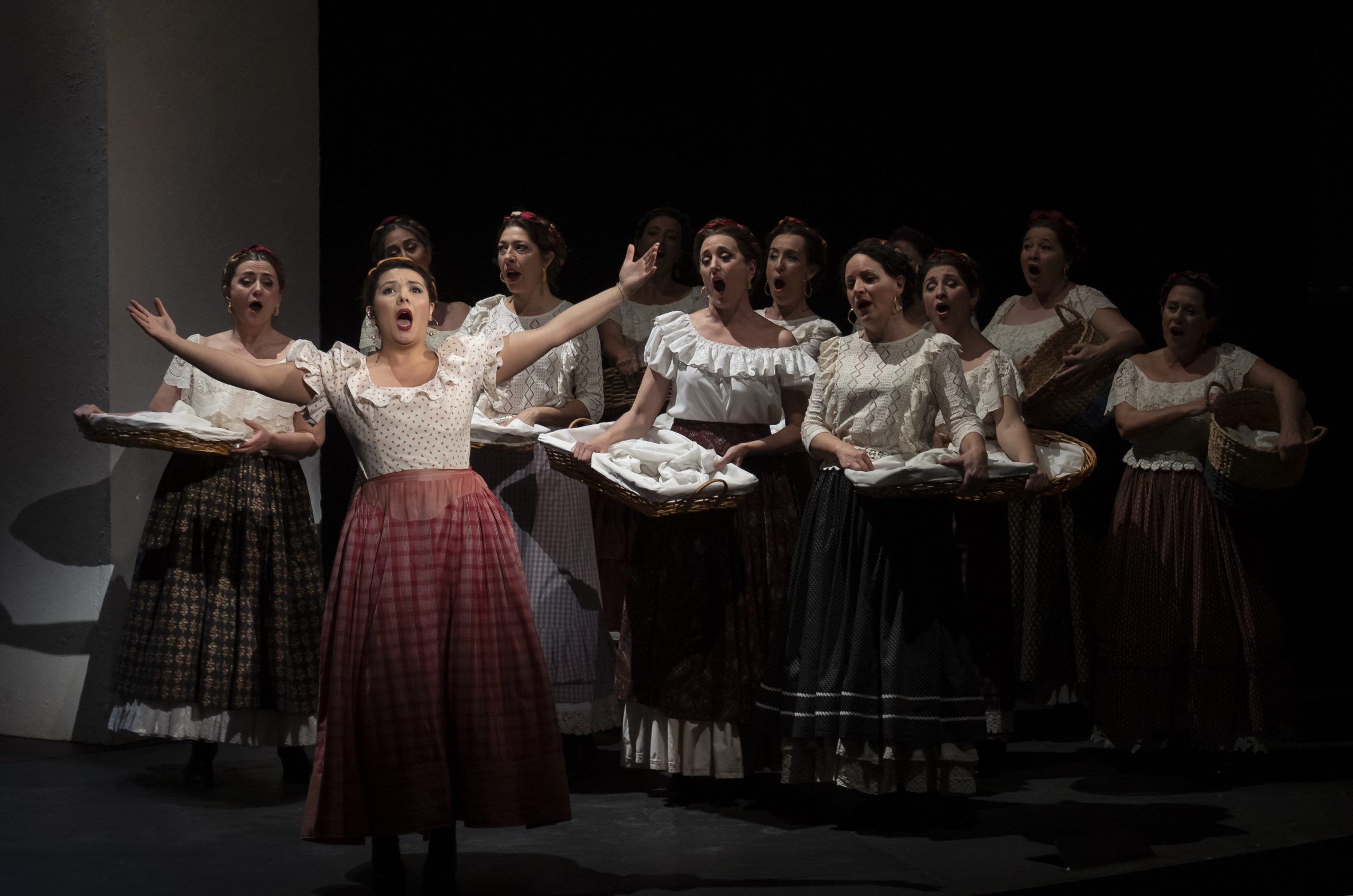 La mezzosoprano valenciana Sandra Ferrández encarna a Raimunda, eje de las pasiones y traiciones que se establecen en la hacienda de El Soto entre su hija, Acacia (María Caballero), su segundo esposo, Esteban (César Méndez), y el primer pretendiente de Acacia (Vicent Romero); todos ellos, artistas del Centre Plácido Domingo.